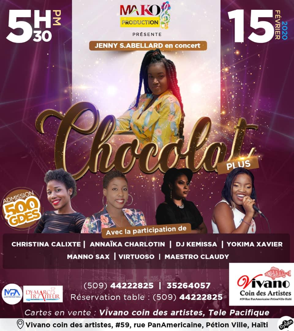 MAKO Productions présente ce Samedi 15 Février 2020 : Jenny S. Abellard en concert dans "CHOCOLAT Plus".