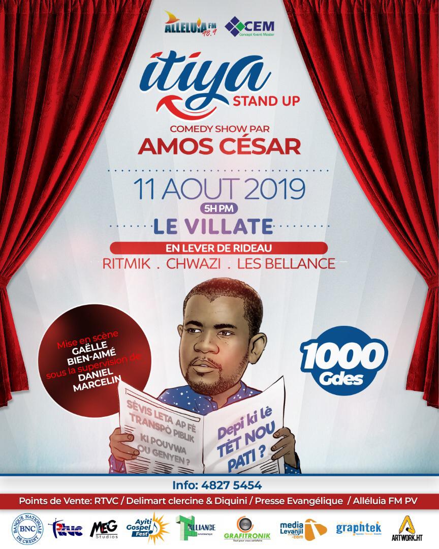 Spectacle d'humour Itiya écrit et joué par Amos César mise en scène Gaëlle Bien-Aimé. Ce 11 août 2019 à partir de 5h PM à le villate. Une invitation signée Concept Event Master ...