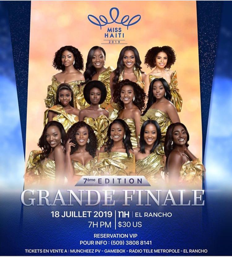 Ça y est!L'évènement tant attendu est arrivé,la grande finale de la 7ème édition du concours Miss Haïti.Le 18 Juillet 2019,à partir de 7h PM à NH El Rancho,on va décerner la couronne à celle qui l'a le...