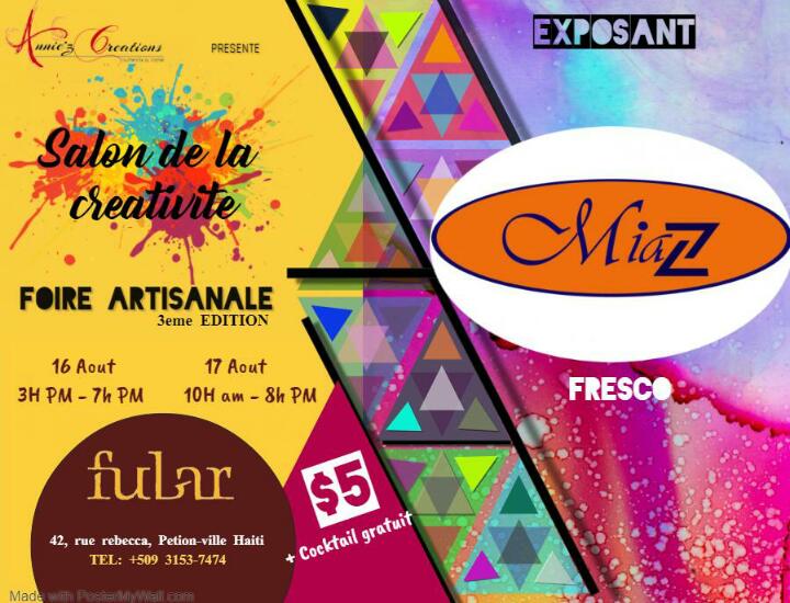 Annie'z creations organise la 3eme édition de leur foire artisanale "Salon de la créativité" le 16 Août 2019 de 3h PM à 7h PM et le 17 Août 2019 de 10H AM à 8H PM.Cette activité se fera à Fubar sis à 4...