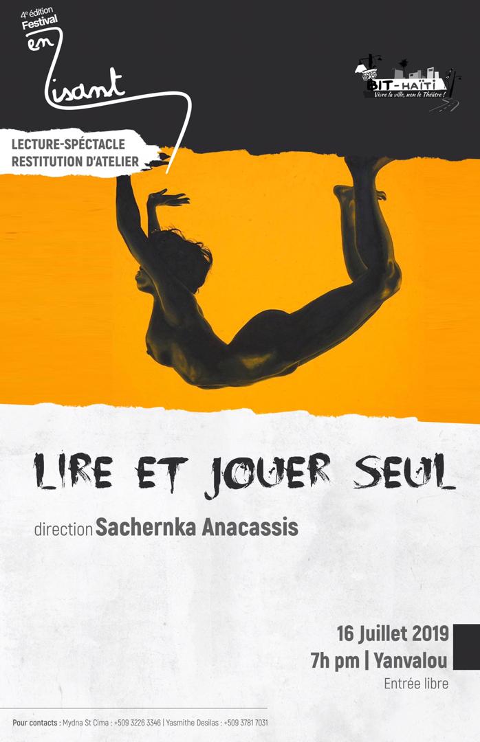 Le 16 Juillet 2019,Festival En Lisant vous offre "Lecture-Spectacle-Restitution D'atelier" sur le thème "Lire et Jouer Seul" sous la direction de Sachernka Anacassis.Cette activité débutera à 7h PM,à Yanvalo...
