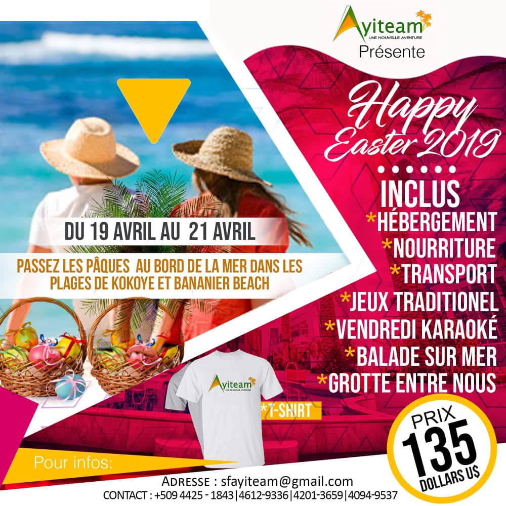 “Confiez nous sans craintes vos vacances de pâques cette année si vous voulez qu'elles soient inoubliables” c'est ce que vous propose Ayiteam avec son activité baptisée Happy Easter en vous invitant à ...