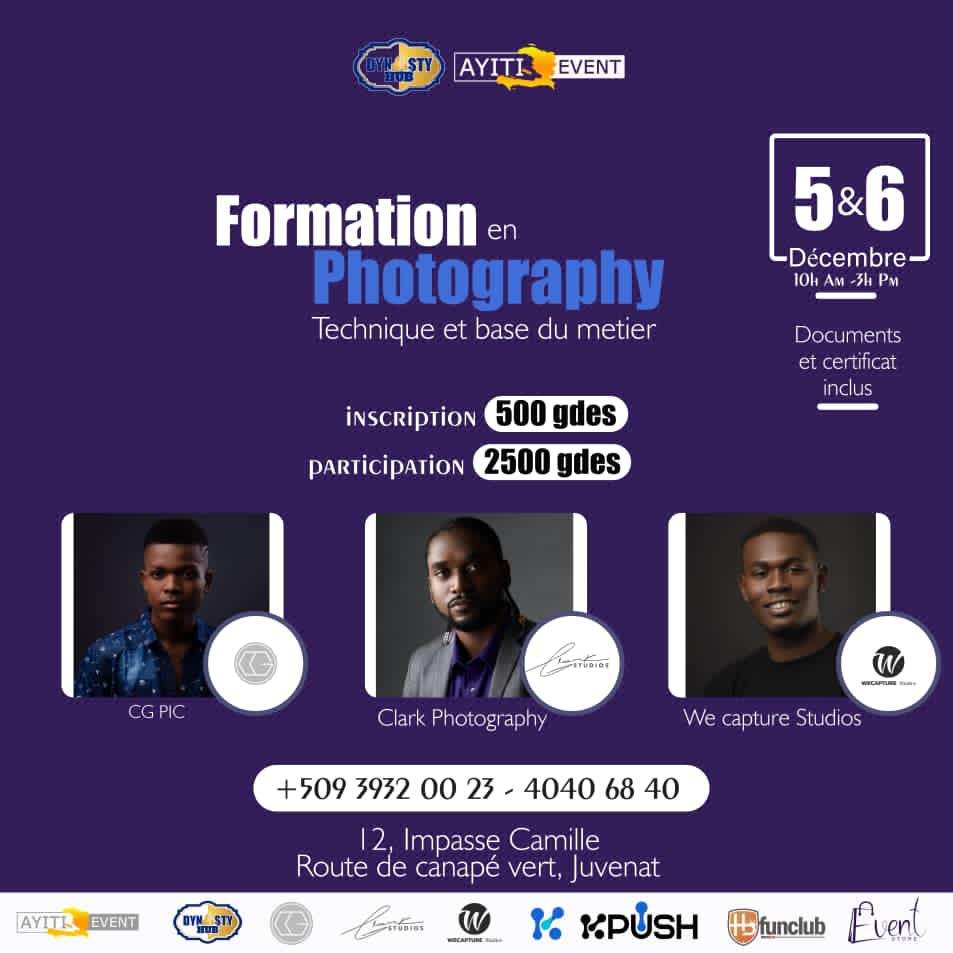 Eben nou envitew vin nan fòmasyon sa k'ap fèt 5 a 6 desanm nan avèk plizyè fotograf pwofesyonel ki pral montre nou teknik yo avèk baz metye a. Fòmasyon an ap komans...