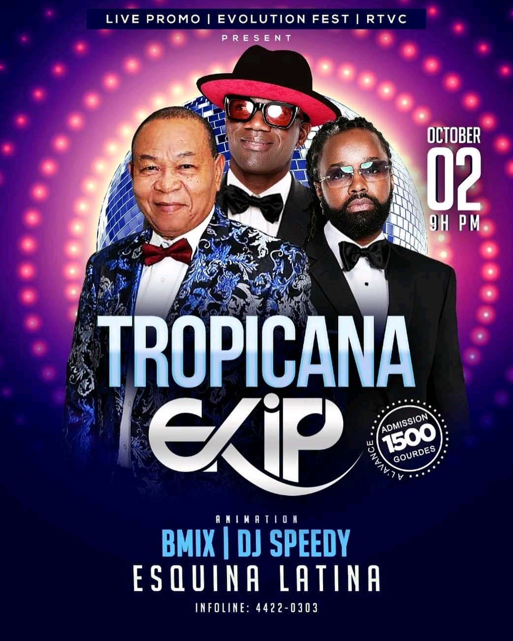 EKIP et Tropicana d'Haïti vont performer à Esquina Latina le 02 octobre 2020 au prix de 1500 gourdes à l'avance. Dj Bmix et dj Speedy seront aussi au rendez-vous. Ne ratez pas cet événement !...