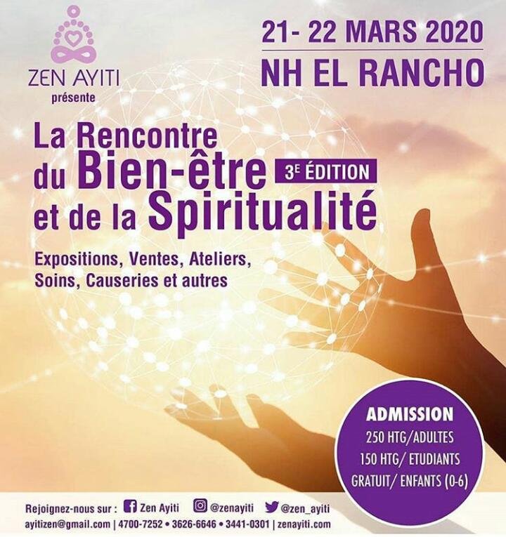 Zen Ayiti présente la 3ème édition de "La rencontre du Bien-être et de la spiritualité,le 21 et le 22 Mars 2020,à NH El Rancho.Il y aura au programmme:Expositions,ventes,ateliers,soins,causeries et autres.L...