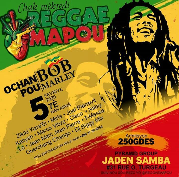 Reggae mapou anonse pwochen seyans li an kap fèt 5 fevriye sa kap vini an e nou pa ta renmenw rate sa a paske yo pote plis bel bagay pou nou. Lap fèt nan lakou sanba 31,rue O. L'ap komanse a 7è nan aswè. Atis...