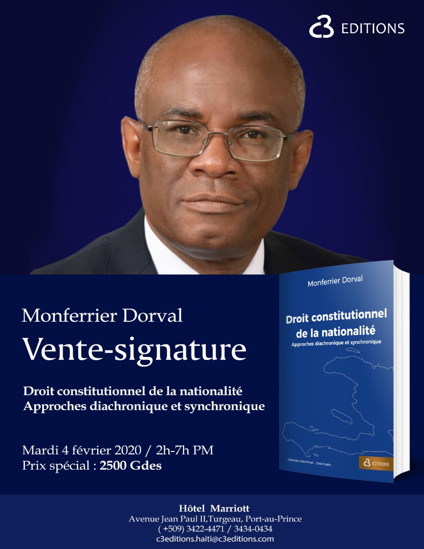 Vous êtes conviés à la vente-signature du livre "Droit constitutionnel de la nationalité" écrit par Monferrier Dorval,le mardi 4 Février 2020,de 2hPM à 7hPM,à l'Hôtel Marriott sis à Avenue Jean Paul II,...
