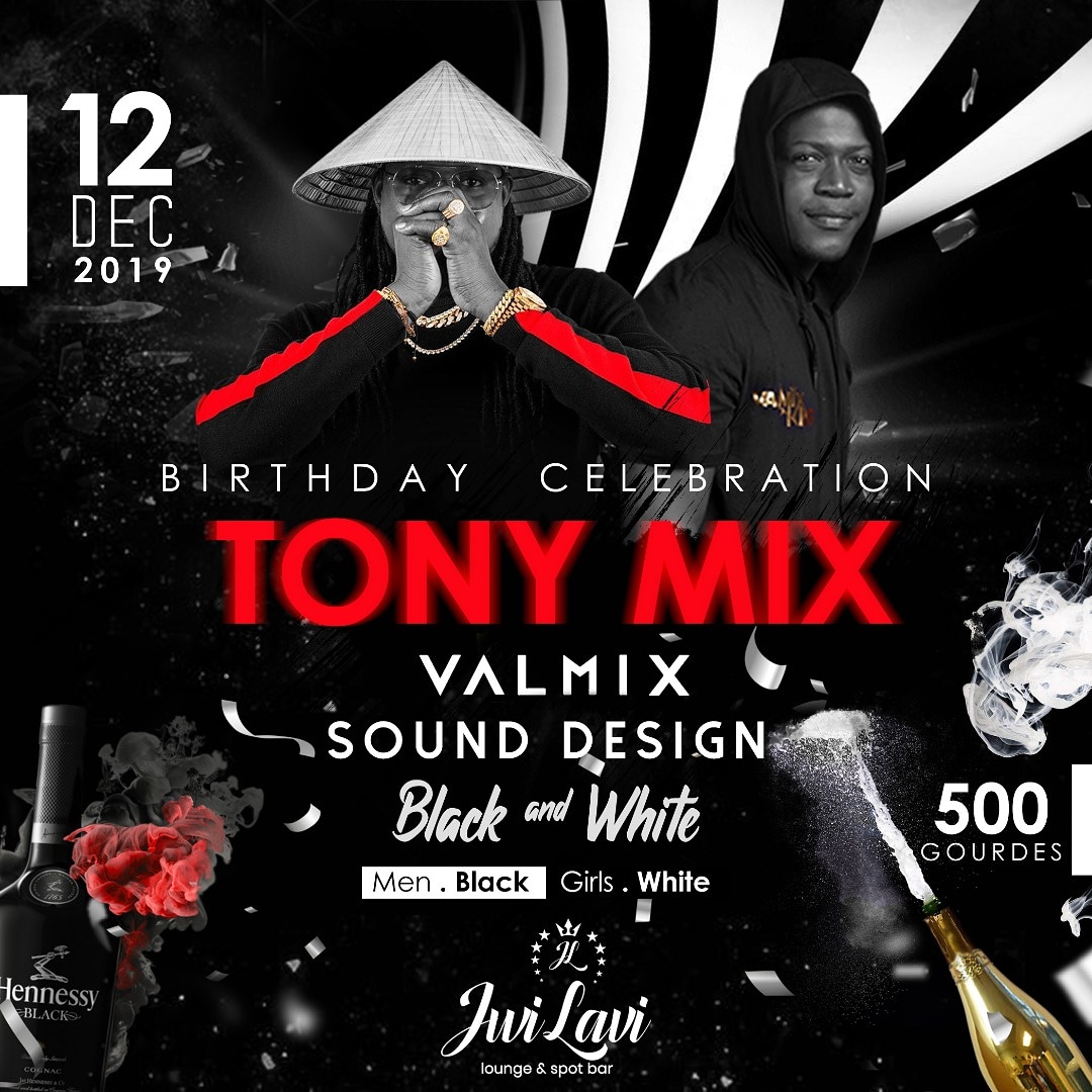 Venez fêter avec Tony mix le 12 Décembre 2019,à Jwi Lavi Lounge and Spot Bar ,sis à Côté plage 18 , Carrefour. Valmix et Sound Design seront de la partie.Le prix est à 500 gourdes. Men: black Girls : whith...